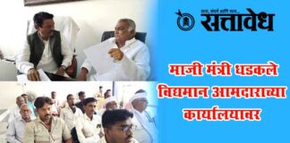 Team Sattavedh Ex-minister Subodh Saoji concerns about pending development works : मतदारसंघातील समस्या आणि अपूर्ण विकासकामांचा वाचला पाढा Mehkar मेहकर मतदारसंघातील वाढत्या समस्या आणि अपूर्ण विकासकामांच्या पार्श्वभूमीवर माजी मंत्री सुबोध सावजी यांनी आक्रमक भूमिका घेत आमदार सिद्धार्थ खरात यांच्या कार्यालयात थेट धडक देत जाब विचारला. २० फेब्रुवारी रोजी शेतकरी व नागरिकांसह झालेल्या या भेटीमुळे स्थानिक … Continue reading Siddharth Kharat : माजी मंत्री धडकले विद्यमान आमदाराच्या कार्यालयावर