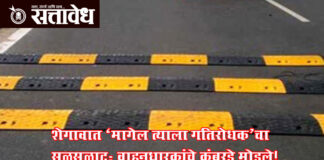 Team Sattavedh shegaon-unplanned-speed-breakers-issue-nagarpalika-politics : नगरसेवकांकडून ‘काम’ दाखवण्यासाठी चढाओढ की दिखावा? ‘सतावेध’ विशेष राजकीय विश्लेषण Shegao राज्यात ‘मागेल त्याला शेततळे’ किंवा ‘मागेल त्याला सौरपंप’ या सरकारी योजना गाजत असताना, संत नगरी शेगावात मात्र सध्या ‘मागेल त्याला गतिरोधक’ ही एक नवीच अनौपचारिक योजना राबवली जात असल्याची उपरोधिक चर्चा रंगली आहे. नवनियुक्त नगरसेवकांमध्ये आपल्या प्रभागात काहीतरी ‘मोठे’ काम … Continue reading Speed breakers : शेगावात ‘मागेल त्याला गतिरोधक’चा सुळसुळाट; वाहनधारकांचे कंबरडे मोडले!
