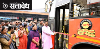 Team Sattavedh Sudhir Mungantiwar inaugurated the new buses : परीवहन मंत्री प्रताप सरनाईक यांचा चंद्रपूर जिल्हा दौरा लवकरच Chandrapur : वित्तमंत्री असताना एस.टी. महामंडळाला जास्त निधी दिला होता. याचं साधं कारण होतं की, श्रीमंत माणूस कारने फिरू शकतो. पण गरीब आणि मध्यमवर्गीय लोकांसाठी एस.टी. हे प्रवासाचं महत्वाचं माध्यम आहे. गरीब लोकांच्या सुखदुःखामध्ये जर कुणी साथ … Continue reading Sudhir Mungantiwar : लालपरी ही गरीबांची जीवनदायिनी; सुधीर मुनगंटीवारांनी केले नव्या बसेसचे लोकार्पण