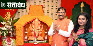 Team Sattavedh Prayer to Lord Ganesha for farmers, agricultural laborers and public welfare : शेतकरी, शेतमजूर व जन कल्याणासाठी गणरायाच्या चरणी प्रार्थना Chandrapur : राज्याचे माजी मंत्री आणि भाजपाचे ज्येष्ठ नेते आमदार सुधीर मुनगंटीवार यांनी आज गणेश चतुर्थीच्या निमित्ताने चंद्रपूर येथील आपल्या निवासस्थानी सहकुटुंब गणेश प्रतिष्ठापना करून पूजन केले. सकाळपासूनच घरामध्ये धार्मिक आणि आध्यात्मिक वातावरण … Continue reading Sudhir Mungantiwar : आ. सुधीर मुनगंटीवार यांच्या निवासस्थानी गणेश प्रतिष्ठापना