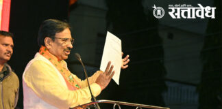 Team Sattavedh Sudhir Mungantiwar strong warning, People answer those who underestimate Ram devotees : रामभक्तांना कमी लेखणाऱ्यांना जनता उत्तर देईल, सुधीर मुनगंटीवारांचा ठाम इशारा Chandrapur : प्रभू श्रीराम संदर्भात सुरू असलेल्या राजकीय वक्तव्यांवर तसेच काँग्रेस नेते विजय वडेट्टीवार यांनी चंद्रपुरातील राम कथेवर केलेल्या टीकेचा संदर्भाने आमदार सुधीर मुनगंटीवार यांनी थेट आणि ठाम भूमिका मांडत स्पष्ट … Continue reading Sudhir Mungantiwar : श्रीरामांना काल्पनिक म्हणणाऱ्या काँग्रेसच्या विचारांवरच रावणछाया