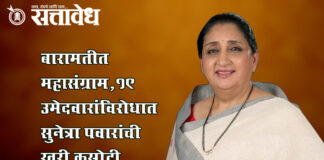 Team Sattavedh Epic battle in Baramati-Sunetra Pawar faces a tough test against 19 contenders : विधानसभा पोटनिवडणुक,२३ एप्रिलला मतदान, ४ मे रोजी निकाल Pune : बारामतीत महासंग्राम रंगण्याची चिन्हे स्पष्ट झाली असून १९ उमेदवारांविरोधात सुनेत्रा पवार यांची खरी कसोटी लागणार आहे. राज्यातील महत्त्वाच्या राजकीय घडामोडींमध्ये गणल्या जाणाऱ्या या विधानसभा मतदारसंघातील पोटनिवडणुकीने वातावरण तापले आहे. दिवंगत … Continue reading Sunetra pawar – बारामतीत महासंग्राम,१९ उमेदवारांविरोधात सुनेत्रा पवारांची खरी कसोटी