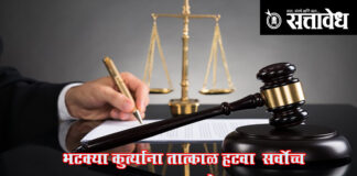 Team Sattavedh Responsibility for public places lies with local administration : सार्वजनिक ठिकाणांवरील जबाबदारी स्थानिक प्रशासनावर” New Delhi : गेल्या काही महिन्यांपासून देशभरात भटक्या कुत्र्यांच्या हल्ल्यांच्या घटना मोठ्या प्रमाणावर समोर येत होत्या. लहान मुले, वृद्ध नागरिक आणि सर्वसामान्य लोकांवर वारंवार हल्ले होत असल्याने संताप आणि भीतीचे वातावरण निर्माण झाले होते. एका बाजूला नागरिकांनी अशा कुत्र्यांना … Continue reading Supreme Court order : भटक्या कुत्र्यांना तात्काळ हटवा सर्वोच्च न्यायालयाचा कडक आदेश