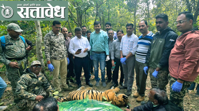 Gondia गोंदिया जिल्ह्यातील कोहका-भानापूर परिसरात मंगळवारी, १४ जानेवारी रोजी सकाळी ११ वाजता एका वाघाचा मृतदेह आढळला. या घटनेची माहिती गावकऱ्यांनी वन विभागाच्या अधिकाऱ्यांना दिली. त्यानंतर वन्यजीव विभागाचे अधिकारी व कर्मचारी, सेवा संस्थेच्या पदाधिकाऱ्यांनी घटनास्थळी पोहोचून पाहणी केली.