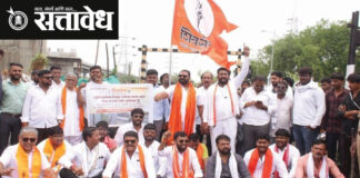 Team Sattavedh Allegations that the construction of the flyover is third-class : रस्ता व रेल्वे रोको आंदोलनातून नोंदविला निषेध Akola शहरातील न्यू तापडिया नगर निर्माणाधिन उड्डाणपुलाचे बांधकाम अत्यंत निकृष्ट, थर्डक्लास पध्दतीने व संथगतीने करण्यात येत असल्याने उद्धव बाळासाहेब ठाकरे शिवसेना आक्रमक झाली. या दर्जाहीन कामकाजाचा व प्रशासनाच्या निषेधार्थ शिवसेनेने रस्ता व रेल्वे रोको आंदोलन करत … Continue reading Uddhav Balasaheb Thackeray Shiv Sena : उड्डाणपुलाचे बांधकाम थर्डक्लास, शिवसेना आक्रमक!