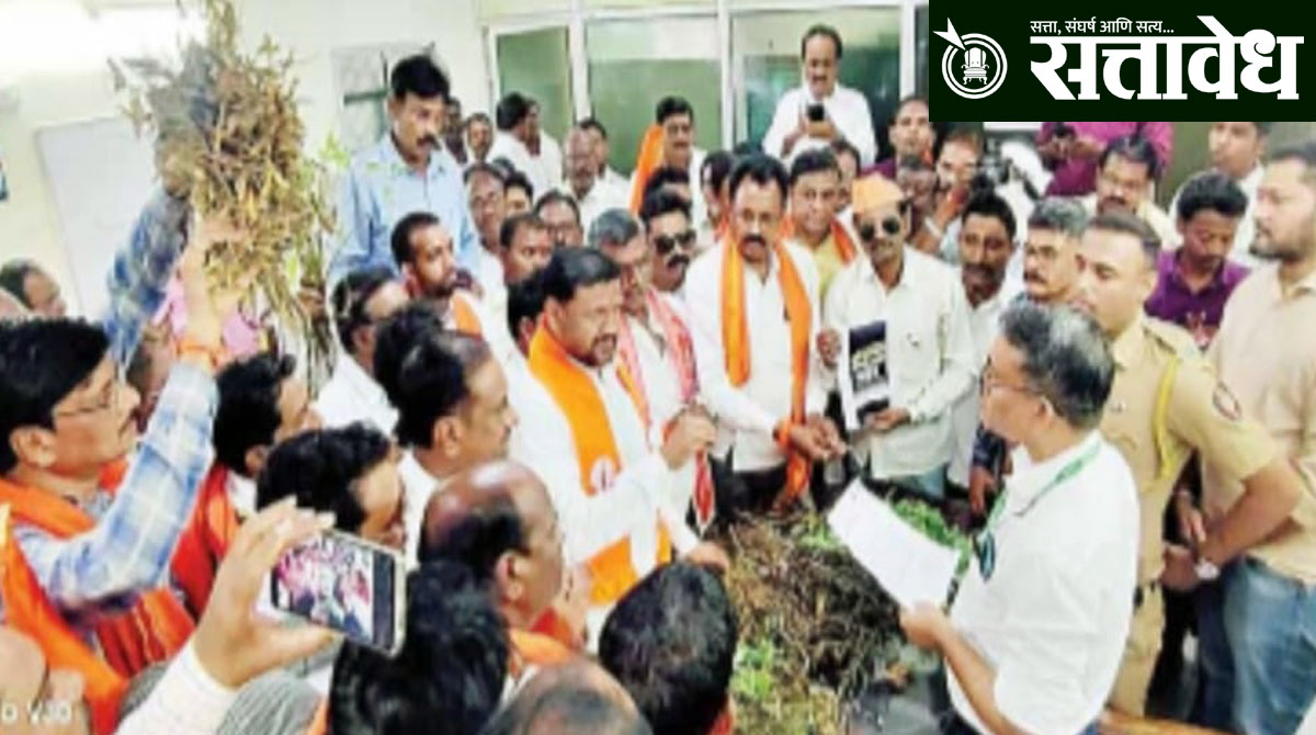 Protest by throwing toor dal in the office of agriculture officers : ठाकरे गटाचे आंदोलन, ओला दुष्काळ घोषित करण्याची मागणी