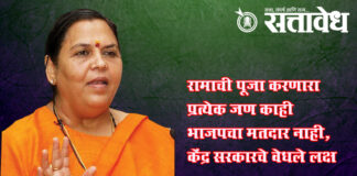Team Sattavedh Uma-bharati-questions-where-is-ramrajya : रामाची पूजा करणारा प्रत्येक जण काही भाजपचा मतदार नाही, केंद्र सरकारचे वेधले लक्ष Nagpur अयोध्येत राम मंदिर बांधले म्हणजे सर्व काही संपले असा होत नाही. रामाची पूजा करणार आणि रामाचा फोटो घरी लावणार प्रत्येक व्यक्ती हा काही भाजपचा मतदार नाही. यासाठी पुढचे उद्दिष्ट रामराज्याचे ठेवावे लागणार आहे. हे रामराज्य विषमता नसलेले, … Continue reading Uma Bharati: राम बंदिर बांधले मात्र रामराज्याचे काय? उमा भारतींचा सवाल