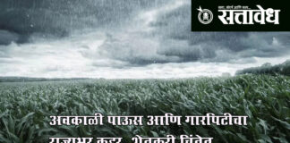 Team Sattavedh unseasonal-rain-hailstorm-crop-damage-maharashtra-farmers-loss-vidarbha-marathwada : विदर्भ, मराठवाडा, खान्देश व पश्चिम महाराष्ट्रात पिकांचे मोठे नुकसान Mumbai : राज्यातील विदर्भ, मराठवाडा, खान्देश आणि पश्चिम महाराष्ट्र या भागांना अवकाळी पाऊस, वादळी वारे आणि गारपिटीचा जोरदार तडाखा बसला असून शेतकऱ्यांचे मोठ्या प्रमाणावर नुकसान झाले आहे. गेल्या दोन दिवसांत झालेल्या या हवामान बदलामुळे काढणीस आलेली गहू, हरभरा, मका, कांदा तसेच आंबा … Continue reading Unseasonal rain : अवकाळी पाऊस आणि गारपिटीचा राज्यभर कहर, शेतकरी चिंतेत