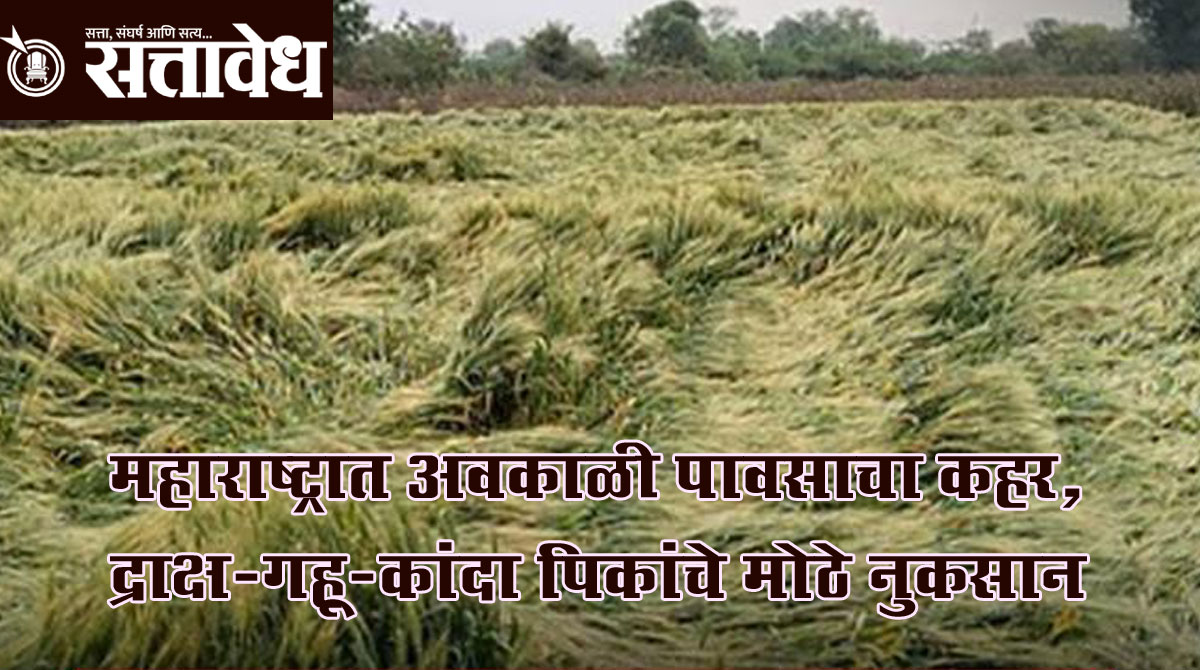जळगाव जिल्ह्यातील नशिराबाद भागात काढणीसाठी तयार असलेले गव्हाचे पीक पावसामुळे पूर्णपणे भिजून गेले आहे. त्यामुळे उभे पीक जमिनीवर आडवे झाल्याने शेतकऱ्यांना मोठा आर्थिक फटका बसला आहे. धुळे जिल्ह्यातील साक्री आणि ग्रामीण भागात गारपिटीसह पाऊस झाल्याने गहू, कांदा, बाजरी आणि मका या पिकांचे मोठ्या प्रमाणावर नुकसान झाले आहे. गेल्या वर्षीच्या नुकसानीची मदत अद्याप मिळाली नसल्याची खंत शेतकरी व्यक्त करत आहेत.