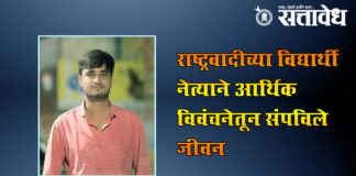 Team Sattavedh A student leader of the NCP ended his life due to financial distress : दिग्गज नेत्याचे निकटवर्तीय, विद्यार्थी आघाडीच्या महानगरप्रमुखपदाची होती जबाबदारी Akola राष्ट्रवादी काँग्रेसच्या विद्यार्थी आघाडीचे महानगरप्रमुख वैभव घुगे यांचा रेल्वेखाली आढळून मृत्यू झाल्याची घटना गुरुवारी सकाळी उघडकीस आली. आर्थिक विवंचना आणि मानसिक तणावातून त्यांनी टोकाचे पाऊल उचलल्याची चर्चा राजकीय वर्तुळात सुरू … Continue reading Vaibhav Ghuge Suicide : राष्ट्रवादीच्या विद्यार्थी नेत्याने आर्थिक विवंचनेतून संपविले जीवन