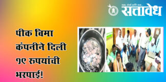 Team Sattavedh Farmers’ sit‑in protest at the crop insurance office : कार्यालयात शेतकऱ्यांचा ठिय्या, तुटपुंज्या भरपाईवर संताप Chikhali शेतकऱ्यांना विमा कंपनीकडून मिळालेली तुटपुंजी भरपाई हा शेतकऱ्यांच्या भावनांशी केलेला खेळ असल्याचा आरोप करत चिखली येथील पीक विमा कार्यालयात शेतकऱ्यांनी ठिय्या आंदोलन छेडले. पीक विमा कंपनीने १९, ४०, ५२, ६०, ६३, १४८, २९ रुपये इतकी रक्कम भरपाई … Continue reading Vidarbha Farmers : पीक विमा कंपनीने दिली १९ रुपयांची भरपाई!