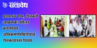 Team Sattavedh Farmers in protest against solar company encroachment: अन्नत्याग आंदोलनाकडे दुर्लक्ष; आंदोलकांची प्रकृती खालावली Malkapur विवरा–देवधाबा गावजोड रस्त्यावर कल्पा सोलर पॉवर कंपनीने केलेल्या कथित अतिक्रमणाविरोधात विवरा येथील शेतकऱ्यांनी २५ जानेवारीपासून मलकापूर तहसील कार्यालयासमोर अन्नत्याग आंदोलन सुरू केले आहे. आंदोलनाचा सहावा दिवस उजाडूनही प्रशासनाने कोणताही ठोस निर्णय घेतलेला नसल्याने शेतकऱ्यांमध्ये तीव्र संतापाची लाट पसरली आहे. … Continue reading Vidarbha Farmers : प्रशासन गप्प, शेतकरी आक्रमक! सोलर कंपनीच्या अतिक्रमणाविरोधात शेतकऱ्यांचा ठिय्या