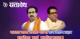 Team Sattavedh Raj and Uddhav Thackeray’s Instructions to workers to check voter lists : निवडणुका जिंकायच्या असताल तर मतदार याद्यांचा अभ्यास करा Mumbai : लोकसभेतील विरोधी पक्षनेते राहुल गांधी यांनी मतचोरी झाल्याचा मुद्दा उघडकीस आणला. पत्रकार परिषद घेऊन त्यांनी पुरावेही सादर केले. याचा थेट आरोप निवडणूक आयोग आणि भारतीय जनता पक्षावर करण्यात आला. कारण निवडणूक … Continue reading Vote rigging case : मतदार याद्या तपासण्याच्या राज आणि उद्धव ठाकरेंच्या कार्यकर्त्यांना सुचना !