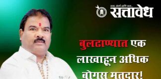 Team Sattavedh No action taken after 4000 names given, serious allegation by MLA : 4000 नावे दिली कारवाई नाही, आमदाराचा गंभीर आरोप Buldhana : बुलढाणा जिल्ह्यात मतदार यादीत तब्बल एक लाखाहून अधिक बोगस नावे असल्याचा गंभीर आरोप शिंदे गटाचे आमदार संजय गायकवाड यांनी केला आहे. मृत व्यक्तींची नावे, स्थानांतरित अधिकाऱ्यांची नावे तसेच दोन ठिकाणी नावे … Continue reading Vote theft case : बुलढाण्यात एक लाखाहून अधिक बोगस मतदार!