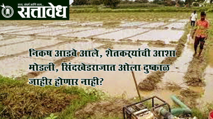 Sindhked raja सिंदखेड राजा तालुक्यात यंदा पावसाने थैमान घातले. संततधार पावसामुळे पिके वाहून गेली, जमिनींची चिखलदरी झाली, तर काही भागांत ढगफुटीसदृश परिस्थिती निर्माण झाली. शेतकऱ्यांच्या डोळ्यातील आशेचे अश्रू पावसाच्या धारांमध्ये मिसळले. निसर्गाने हाती आलेला तोंडी घासही हिसकावून घेतला. त्यामुळे सरसकट ओला दुष्काळ जाहीर होईल अशी शेतकऱ्यांची अपेक्षा होती. मात्र शासनाच्या निकषांमुळे या अपेक्षांवर पाणी फिरले असून तालुका सरसकट दुष्काळाच्या यादीतून बाहेर राहणार आहे.