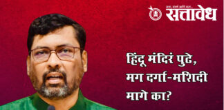 Team Sattavedh BJP questions help for heavy rain victims : अतिवृष्टीग्रस्तांच्या मदतीवरून भाजपचा सवाल Mumbai : महाराष्ट्रावर अतिवृष्टी आणि महापुराचं संकट कोसळलं असून लाखो कुटुंबे अन्न, पाणी आणि निवाऱ्याविना अडकून पडली आहेत. अशा वेळी हिंदू धर्मातील अनेक प्रमुख मंदिरांनी पुढाकार घेत कोट्यवधी रुपयांची मदत सरकारकडे पारदर्शकपणे दिली असून, अन्नधान्य, जीवनावश्यक वस्तू आणि सेवाकार्य सुरू केल्याचं … Continue reading Where is mosque : हिंदू मंदिरं पुढे, मग दर्गा-मशिदी मागे का?
