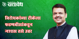 Team Sattavedh We not in habit of running away, atmosphere is ours even before convention : पळून जाण्याची आमची सवय नाही, अधिवेशनाआधीच वातावरण तापले Nagpur : सोमवार पासून सुरू होणाऱ्या हिवाळी अधिवेशनाआधीच सत्ता-विरोधकांमध्ये शब्दयुद्धाचा पारा चांगलाच चढला आहे. चहापानाच्या कार्यक्रमावर बहिष्कार, पत्रकार परिषदेतून आरोपांची झोड आणि सोशल मीडियावरील टोलेबाजी या साऱ्यांमुळे नागपूरचं राजकीय तापमान विदर्भाच्या … Continue reading Winter session : विरोधकांच्या टीकेला फडणवीसांकडून जशास तसे उत्तर