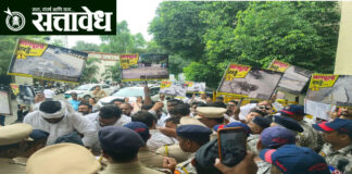 Team Sattavedh Grand exhibition of potholes held in front of the Municipal Corporation in Nagpur : रस्त्यांच्या दुरवस्थेवर युवक काँग्रेस आक्रमक Nagpur : नागपुरात रस्त्यांची अवस्था अत्यंत दयनीय झाली आहे. उड्डाण पुल आणि ऑटोमॅटीव्ह चौक ते कन्हान या मेट्रोच्या कामांमुळे रस्त्यांची पार धुळदाण उडाली आहे. नव्याने केलेले रस्तेही खोदले जात आहेत. परिणामी रोज कुठे ना … Continue reading Youth Congress : नागपुरात महानगरपालिकेसमोर भरले ‘खड्ड्यांचे भव्य प्रदर्शन’