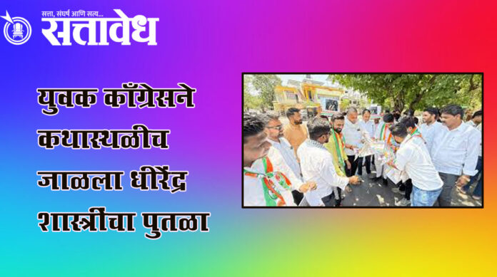 Youth Congress burns an effigy of Dhirendra Krishna Shastri at the protest site : नागपुरात संतापाचा वणवा; शिवरायांच्या अवमानाप्रकरणी आक्रमक