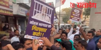 Team Sattavedh Youth Congress protest against RSS Chief : काँग्रेस कार्यालयाजवळ राडा; संघाची खाकी पँट जाळली Nagpur राष्ट्रीय स्वयंसेवक संघाचे सरसंघचालक डॉ. मोहन भागवत यांनी इंदूर येथे केलेल्या एका वक्तव्याचा विरोध करत युवक काँग्रेसकडून देवडिया भवनासमोर आंदोलन करण्यात आले. आंदोलनकर्ते संघ मुख्यालयाकडे निघण्याच्या तयारीत असतानाच विनापरवानगी आंदोलन केल्याचे कारण देत पोलिसांनी त्यांना अडविण्याचा प्रयत्न केला. … Continue reading Youth Congress : युवक काँग्रेसचे सरसंघचालकांविरोधात आंदोलन