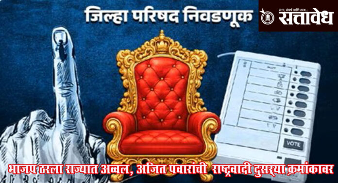 जिल्हा परिषद निकालांमध्ये भाजपने सर्वाधिक 233 जागा जिंकत पहिलं स्थान पटकावलं आहे. अजित पवार गटाच्या राष्ट्रवादी काँग्रेसने 167 जागांवर विजय मिळवला असून मुख्यमंत्री एकनाथ शिंदे यांच्या शिवसेनेला 162 जागा मिळाल्या आहेत. याउलट काँग्रेसला केवळ 56, शरद पवार गटाला 26 आणि उद्धव ठाकरे गटाला 43 जागांवर समाधान मानावं लागलं आहे. महाविकास आघाडीला एकूण अवघ्या 125 जागांवरच विजय मिळाला असून ग्रामीण महाराष्ट्रात त्यांची पकड सैल झाल्याचं चित्र स्पष्ट झालं आहे.